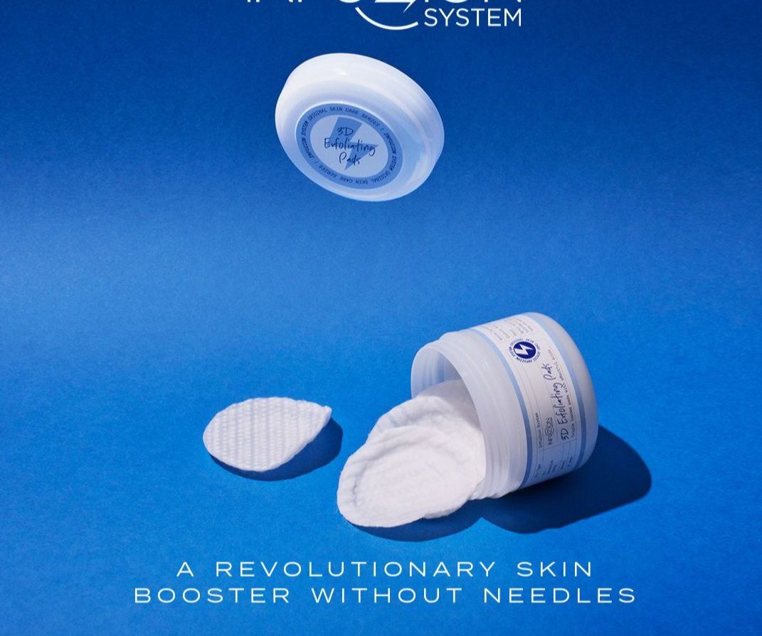 Infuzion Peeling 3D Exfoliating pads kombineras med citronsyra, mjölksyra och glykolsyra som effektivt tar bort överskotts fett och döda hud celler utan att vara för aggressiv inför en behandling med Infuzion.