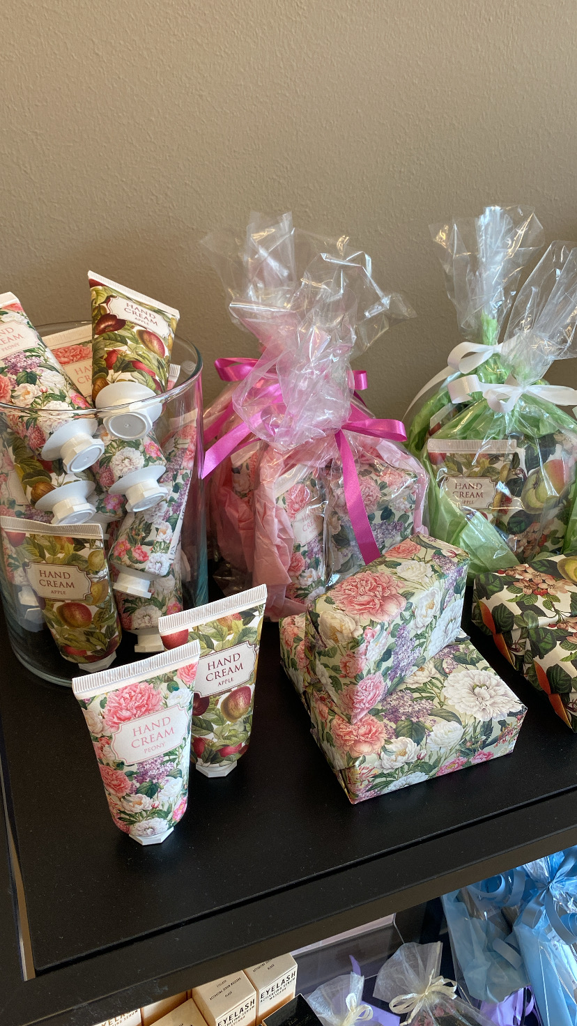 Övriga produkter som brun utan sol, lyxig handtvål och hand kräm som säljs på salongen.